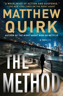 Matthew Quirk has perfected the chase sub-genre of thrillers and it shows with his upcoming novel, THE METHOD. His book THE NIGHT AGENT became a Netflix sensation for (at least) two seasons, and I could see THE METHOD making it to a streaming series someday too.